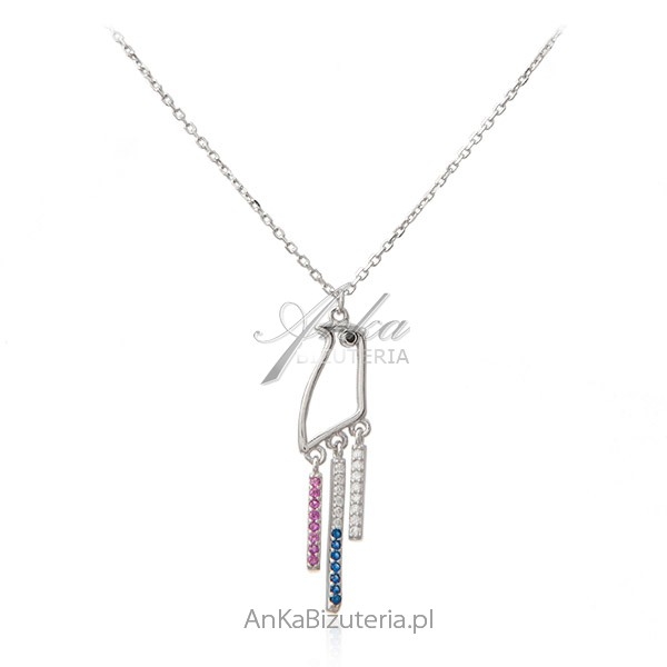 Srebrny naszyjnik próba 925 rodowany z kolorowymi cyrkoniami