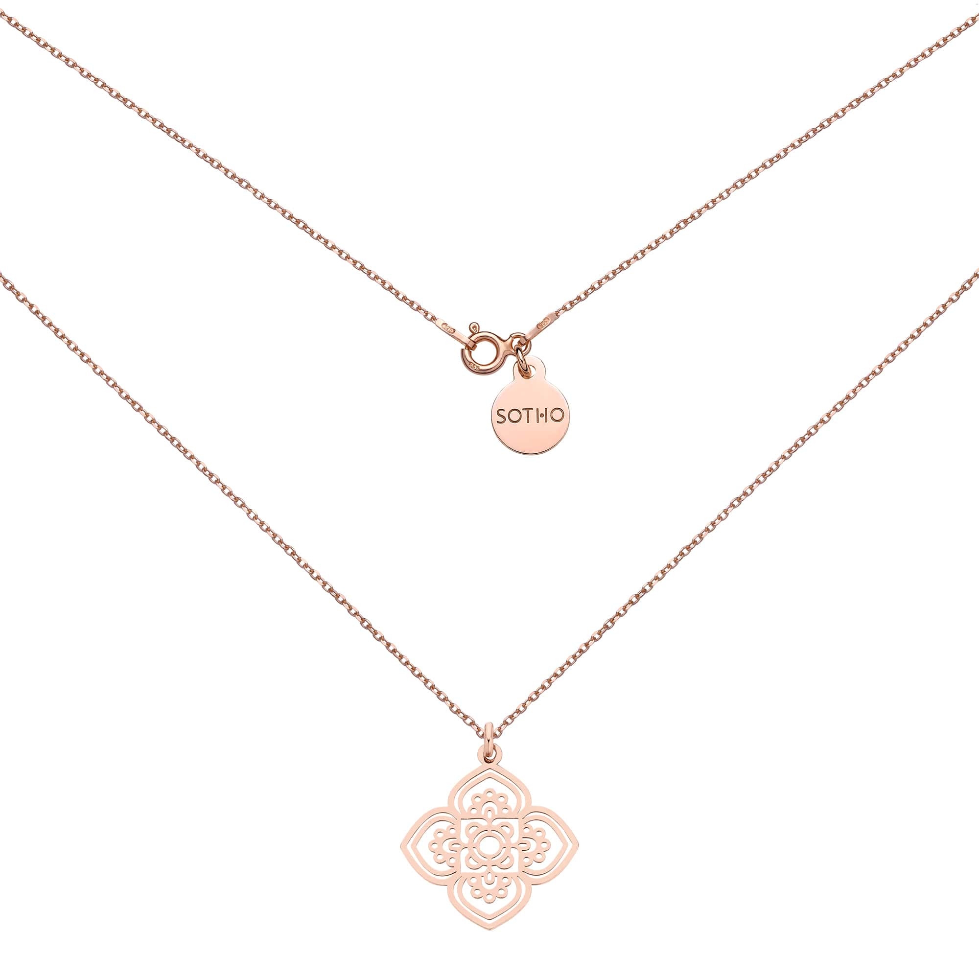 Naszyjnik z różowego złota z dużą rozetą : Długość – 50 cm