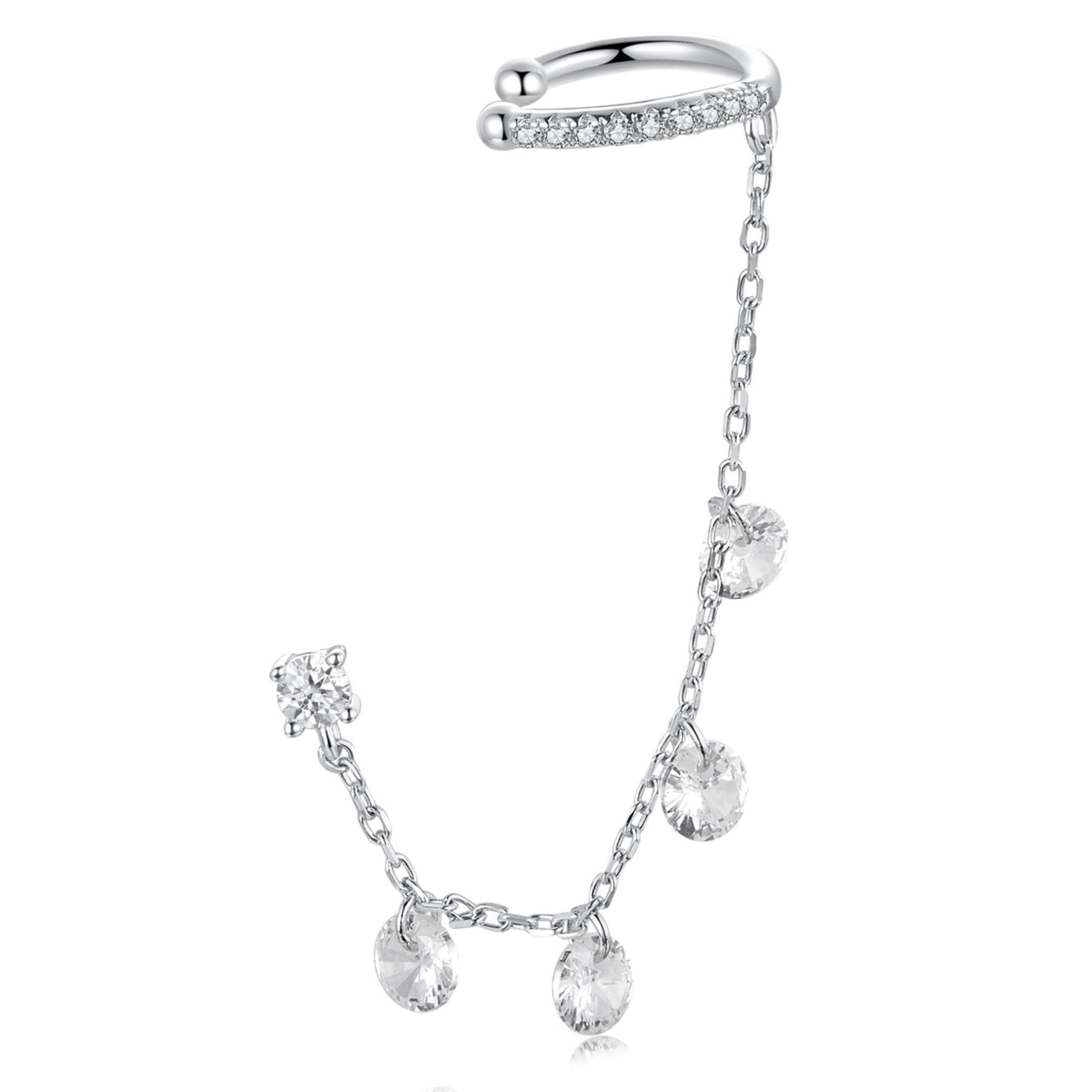 Srebrne kolczyki: nausznica połączona łańcuszkiem z kryształowym sztyftem. zapięcie: zatrzask materiał: srebro 925 kolor kryształów: przezroczyste kształt/motyw: nausznica połączona łańcuszkiem z kryształkiem 1szt wymiary nausznicy: 16,0*13,0 mm wymiary kryształka: 3,0*3,0 mm wymiary łańcuszka: 48 mm waga: 1,30 g. marka: SilverBeads model: K822 Gratis eleganckie opakowanie. Kolczyki zostaną zapakowane w eleganckie pudełeczko prezentowe. W przypadku zakupu kilku par kolczyków lub zestawów kolczyki-bransoletka, naszyjnik-kolczyki zostaną one zapakowane razem do jednego większego pudełka. Jeśli kupujesz biżuterię dla kilku osób i potrzebujesz dodatkowych pudełeczek lub woreczków satynowych znajdziesz je w naszej ofercie.
