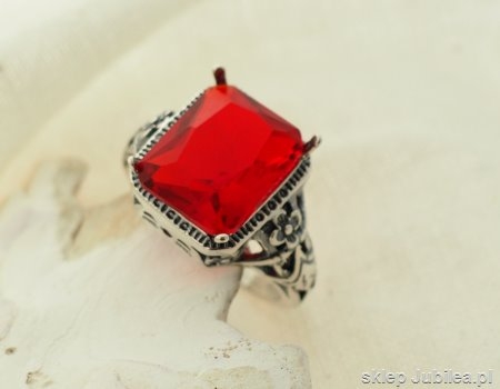 Głęboka czerwona barwa kamienia oraz secesyjna dekoracja pierścionka to idealne połączenie i nawiązanie do starej biżuterii, takiej która zdobiła dłonie naszych babć.