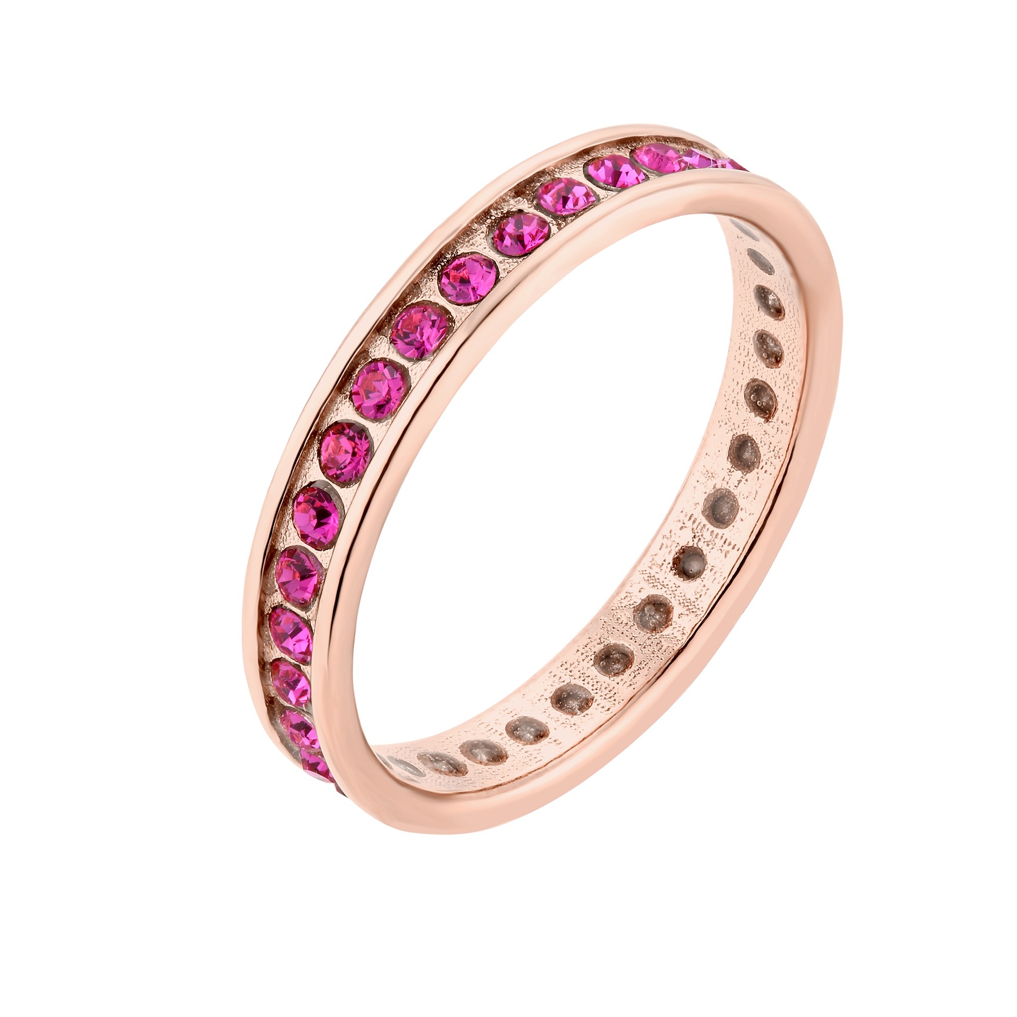 Złota obrączka z kryształami Preciosa w kolorze różowym Fuchsia. Wykonana ze srebra 925 powlekanego 24 karatowym różowym złotem.