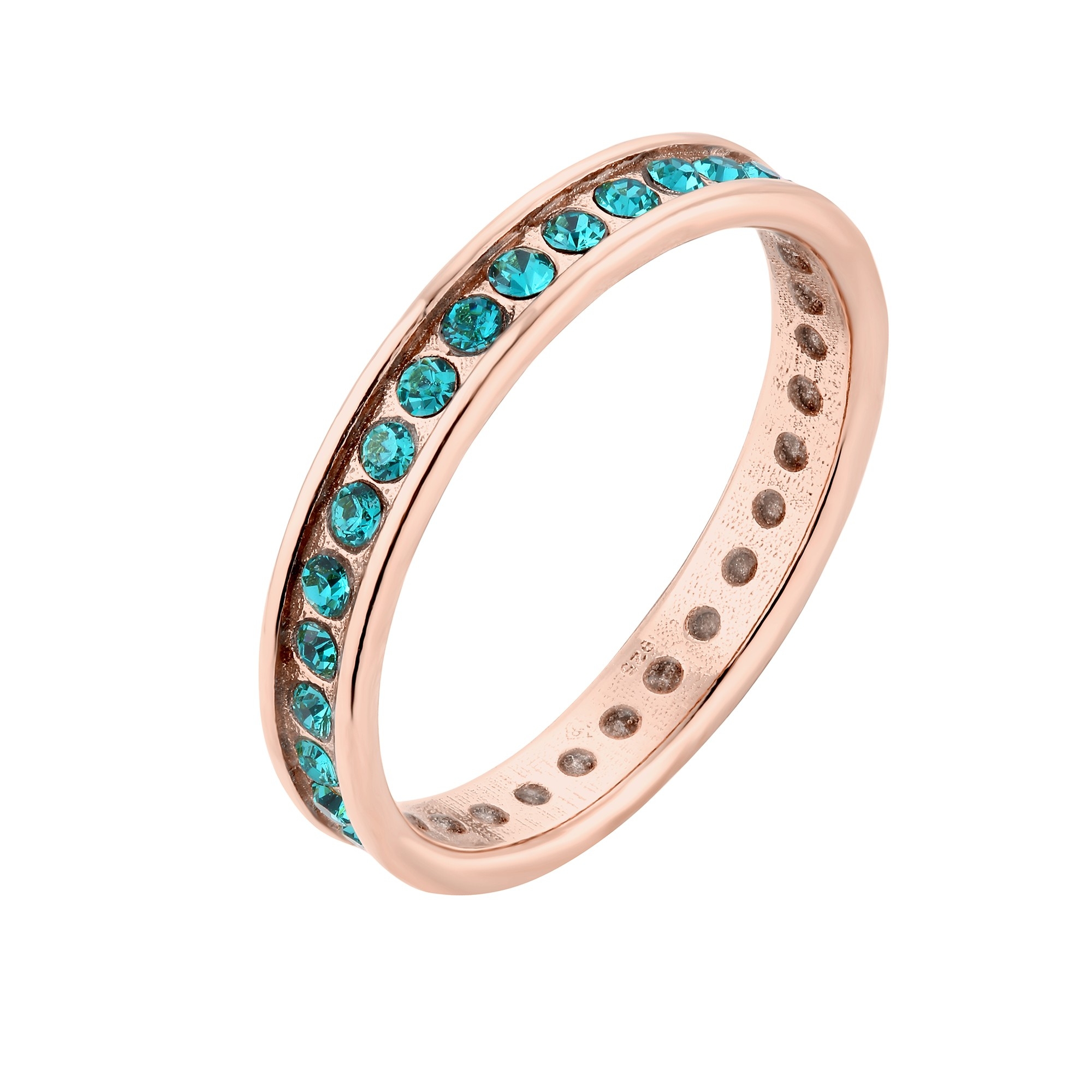 Obrączka z różowego złota z turkusowymi kryształami Preciosa : pierścionki – 18