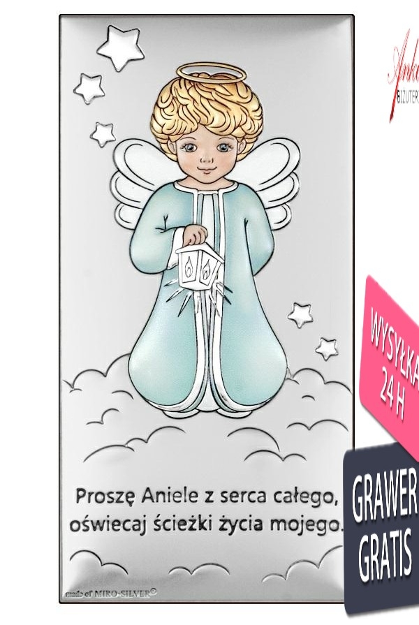 Obrazek ANIOŁEK Z LATARENKĄ DZIECIĄTKO 7*14cm
