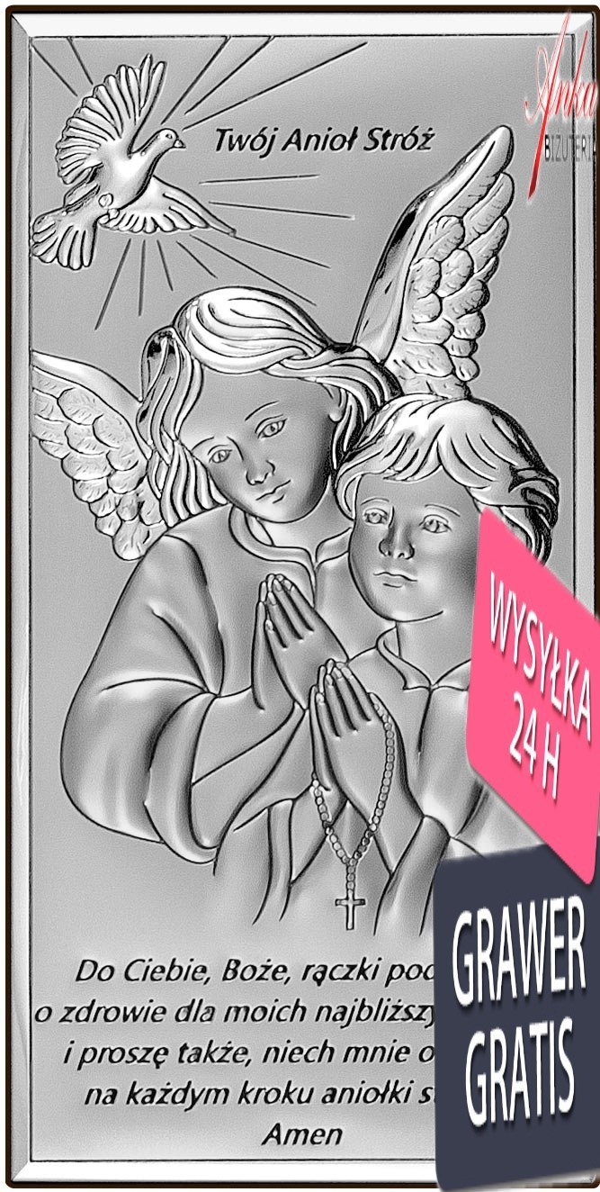 OBRAZEK SREBRNY ANIOŁ STRÓŻ