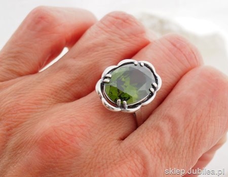 Pierścionek srebrny z oliwinem to już klasyka w biżuterii. Ta para (srebro i oliwin) wdarła się przebojem na ekspozycję salonów jubilerskich. Dlatego w tym miejscu prezentujemy właśnie taką błyskotkę.