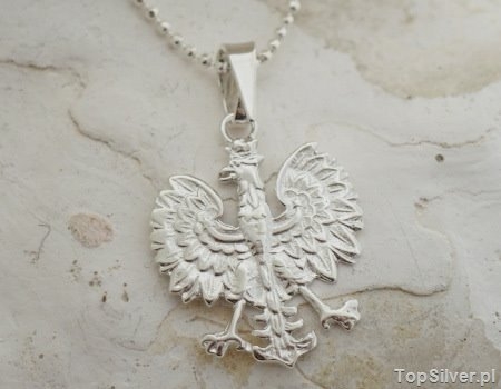 Przedstawiamy Państwu srebrny wisiorek w postaci orła w koronie. Dokładnie taki sam wizerunek orła znajduje się na godle Polski. Wisior jest wykończony na biały połysk, ale istnieje także możliwosć abyśmy taki wisior poczernili (nałożyli na niego oksydę).