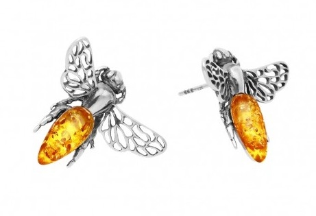 Kamienie: bursztyn w kolorze koniakWymiary kolczyków – długość 2,1 cm /szerokość do 2,7 cm