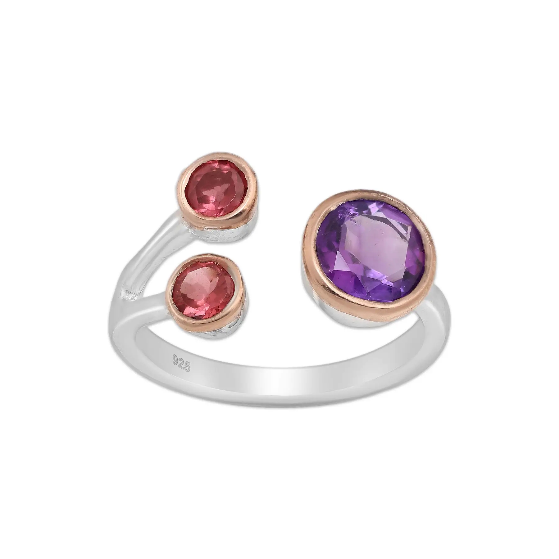 Pierścionek srebrny z granatem i ametystem