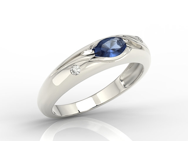 Pierścionek z białego złota z szafirem i diamentami 0,03 ct wzór JP-57B