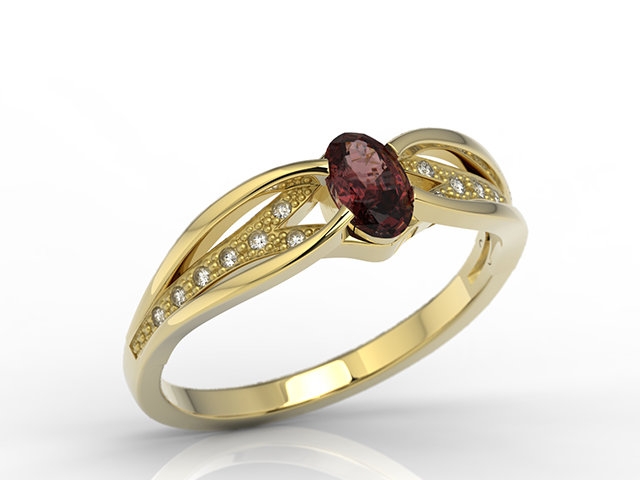 Pierścionek z żółtego złota z granatem i diamentami LP-39Z
