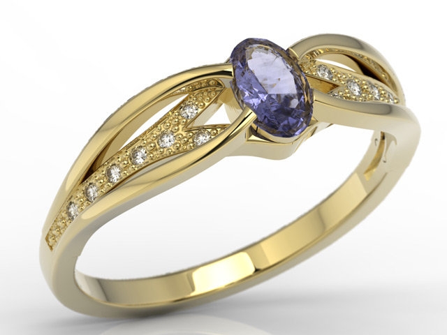 Pierścionek z żółtego złota z tanzanitem i diamentami LP-39Z