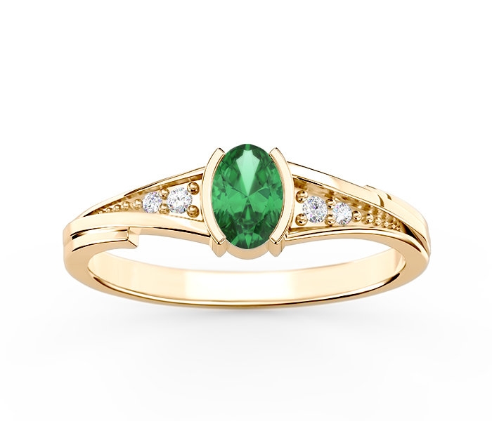 Pierścionek ze złota ze szmaragdem i diamentami JP-2705Z-R