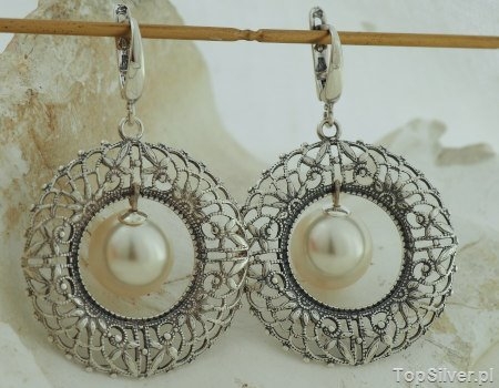 Czy w biżuterii może być lepsze połączenie od pereł i srebra? Naszym zdaniem ta para z całą pewnością mieści się w pierwszej dziesiątce. Przedstawiamy Państwu srebrne ażurowe kolczyki, których powstanie zainspirowane było dziełami malarstwa włoskiego renesansu. Tam spotykane wykończenia fresków, przyczyniły się bezpośrednio do powstania srebrnej dekoracji kolczyków. W kolczykach udało się wkomponować w dość nietypowy sposób perłę – została podwieszona do srebrnej dekoracji. Wisząca luźno perła (synt)z całą pewnością będzie przyciągać spojrzenia. Zaczepienie perły jest w taki sposób, który umożliwia jej łatwe zdjęcie – dzięki czemu mamy zupełnie inne kolczyki 🙂