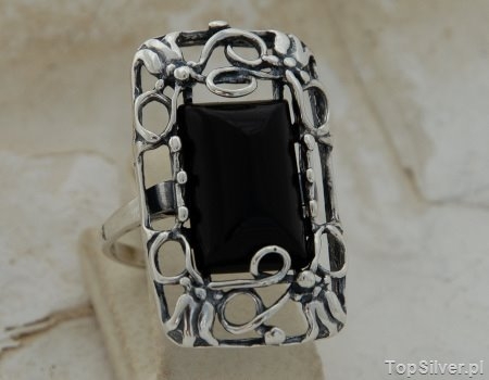 W ażurową oprawę wkomponowany został okazały prostokątny onyks.