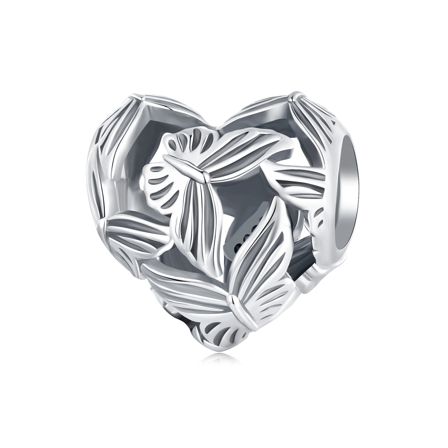 Srebrny charms: serce złożone z motyli. materiał: srebro 925 kształt/motyw: serce / motyle wymiary: 11,0*11,0 mm szerokość otworu: 4,5 mm waga: 1,30 g marka: SilverBeads model: G795 Charms pasuje do większości bransoletek modułowych znanych producentów. Może być także wykorzystany jako zawieszka do naszyjnika. Gratis eleganckie opakowanie. Zawieszki zapakujemy w elegancki, satynowy woreczek. Sprawdzi się on zarówno jako opakowanie prezentowe, jak i do przechowywania biżuterii. Jeśli potrzebujesz pudełeczka prezentowego lub dodatkowych woreczków satynowych znajdziesz je w naszej ofercie.