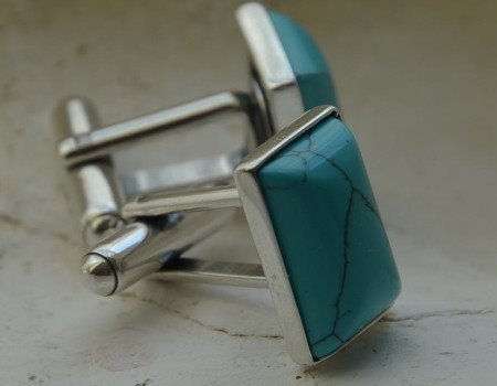 Srebrne spinki do mankietów, których motywem przewodnim jest piękny porstokątny turkus. Jeśli zastanawiasz się czy jest coś co podkreśliło by elegancje garderoby Twojego mężczyzny to z całą pewnością oprócz zegarka są to spinki do koszuli. Prostota kształtu i barwa kamienia to cechuje własnie ten zestaw spinek.