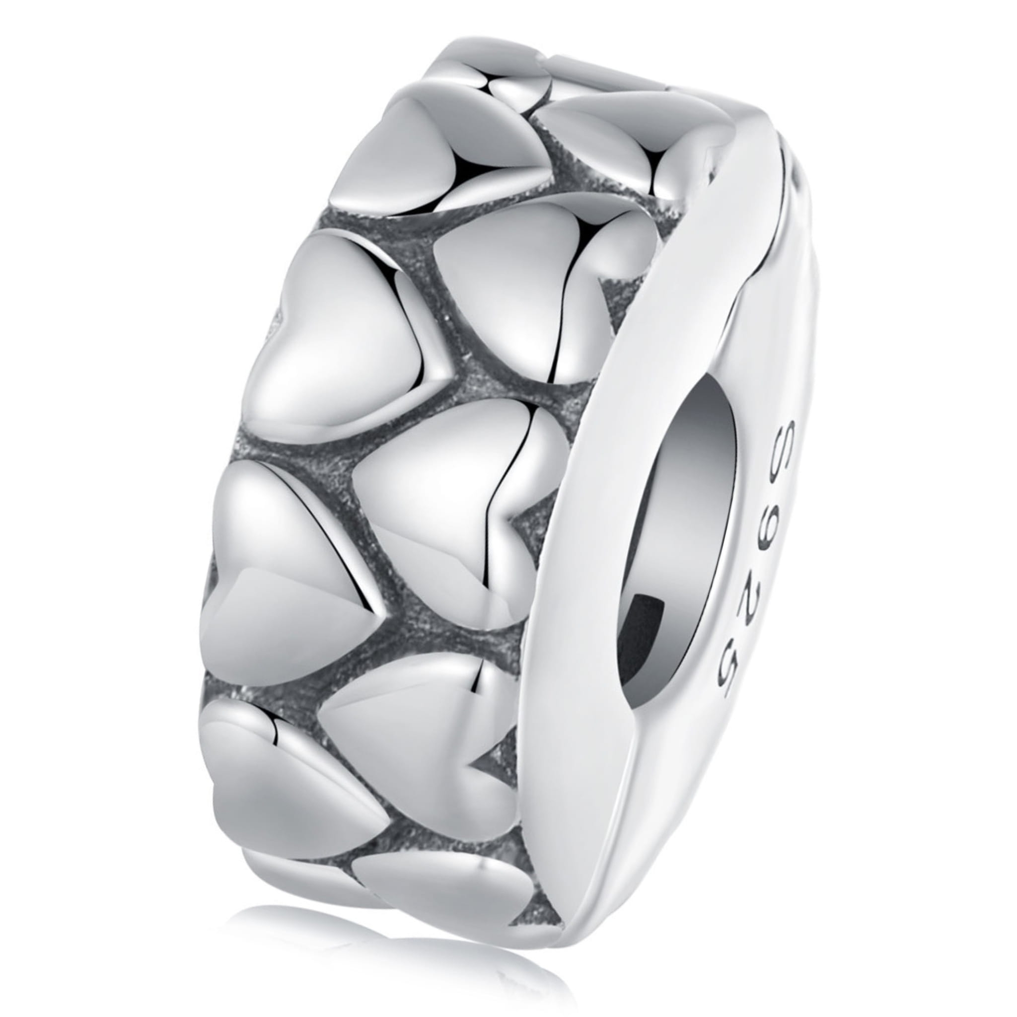 Srebrny charms: spinka z połączonych serduszek. Klips dedykowany do bransoletek wykonanych ze srebra. materiał: srebro 925 kształt/motyw: serduszka wymiary: 10,0*4,0 mm szerokość otworu: 3,5 mm (standardowa grubość bransoletki) waga: 1,70 g marka: SilverBeads model: H009 Charms pasuje do większości bransoletek modułowych znanych producentów. Gratis eleganckie opakowanie. Zawieszki zapakujemy w elegancki, satynowy woreczek. Sprawdzi się on zarówno jako opakowanie prezentowe, jak i do przechowywania biżuterii. Jeśli potrzebujesz pudełeczka prezentowego lub dodatkowych woreczków satynowych znajdziesz je w naszej ofercie.