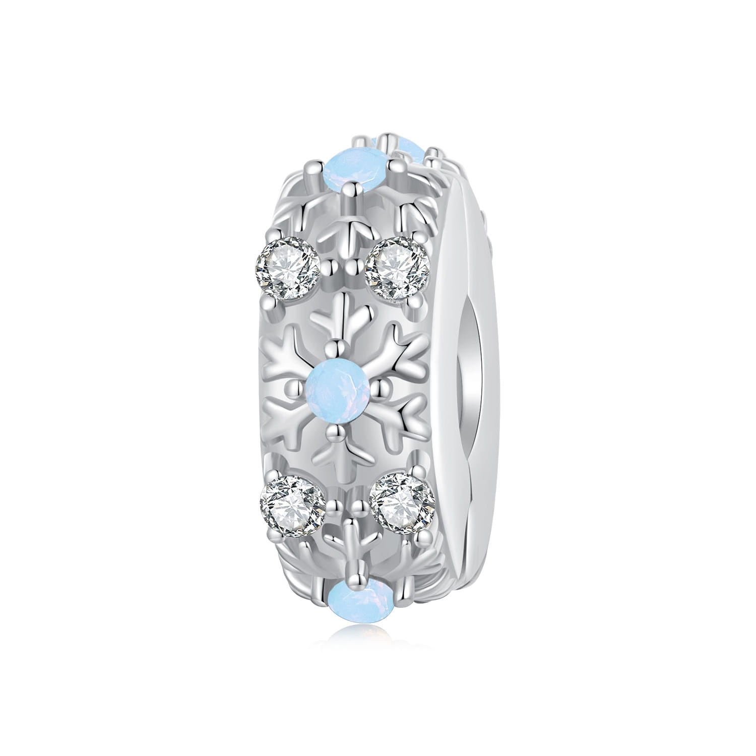 Srebrny charms: spinka ozdobiona płatkami śniegu i kryształami. Klips dedykowany do bransoletek wykonanych ze srebra z silikonową blokadą w środku. materiał: srebro 925 kolor kryształów: błękitne kształt/motyw: płatki śniegu wymiary: 11,0*4,0 mm szerokość otworu: 3,5 mm (standardowa grubość bransoletki) waga: 2,0 g marka: SilverBeads model: G881 Charms pasuje do większości bransoletek modułowych znanych producentów. Gratis eleganckie opakowanie. Zawieszki zapakujemy w elegancki, satynowy woreczek. Sprawdzi się on zarówno jako opakowanie prezentowe, jak i do przechowywania biżuterii. Jeśli potrzebujesz pudełeczka prezentowego lub dodatkowych woreczków satynowych znajdziesz je w naszej ofercie.