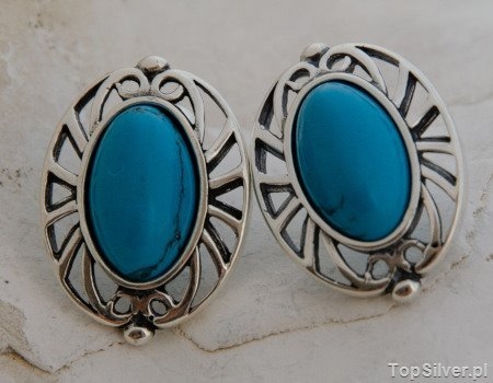 Srebrne kolczyki z tego modelu to nawiązanie do biżuterii secesyjnej. W każdym centralnym miejscu kolczyka umieszczono turkus o wymiarach 8 x 13mm.