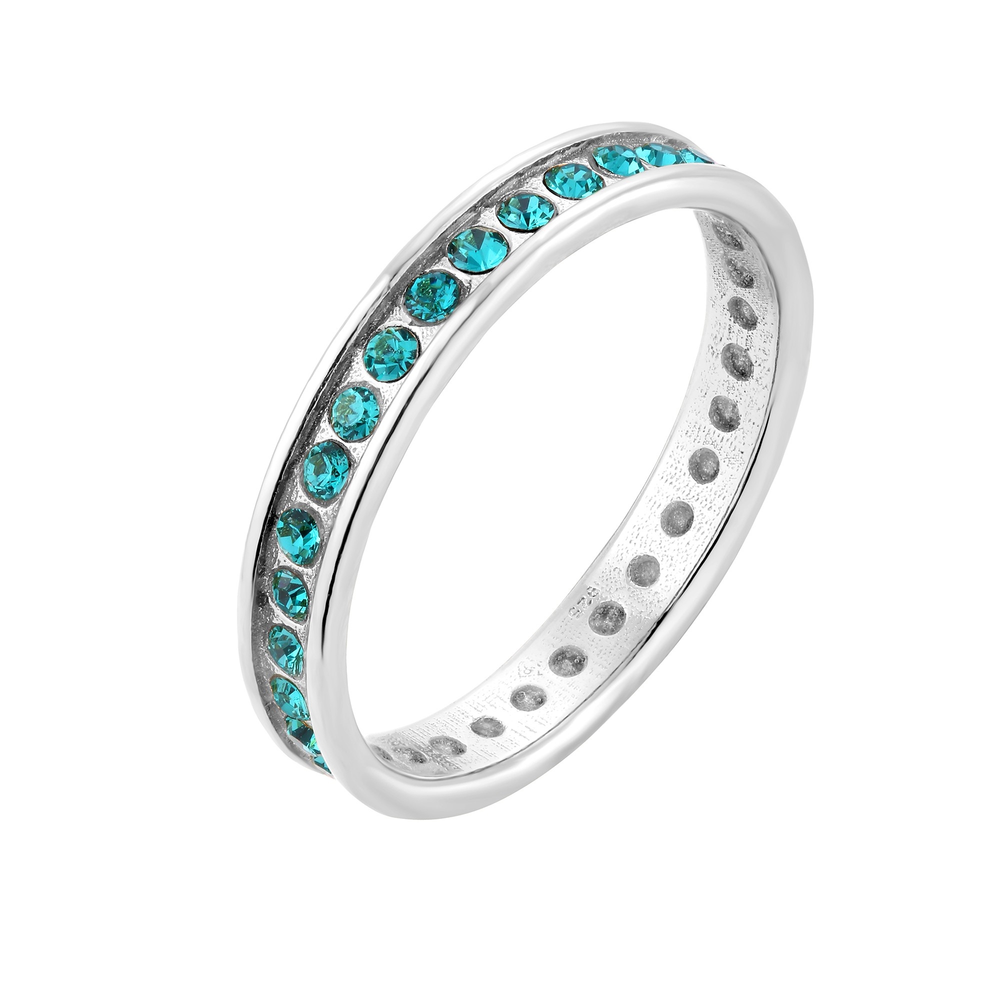 Srebrna obrączka z kryształami Preciosa w kolorze turkusowym Blue Zircon. Wykonana ze srebra 925.