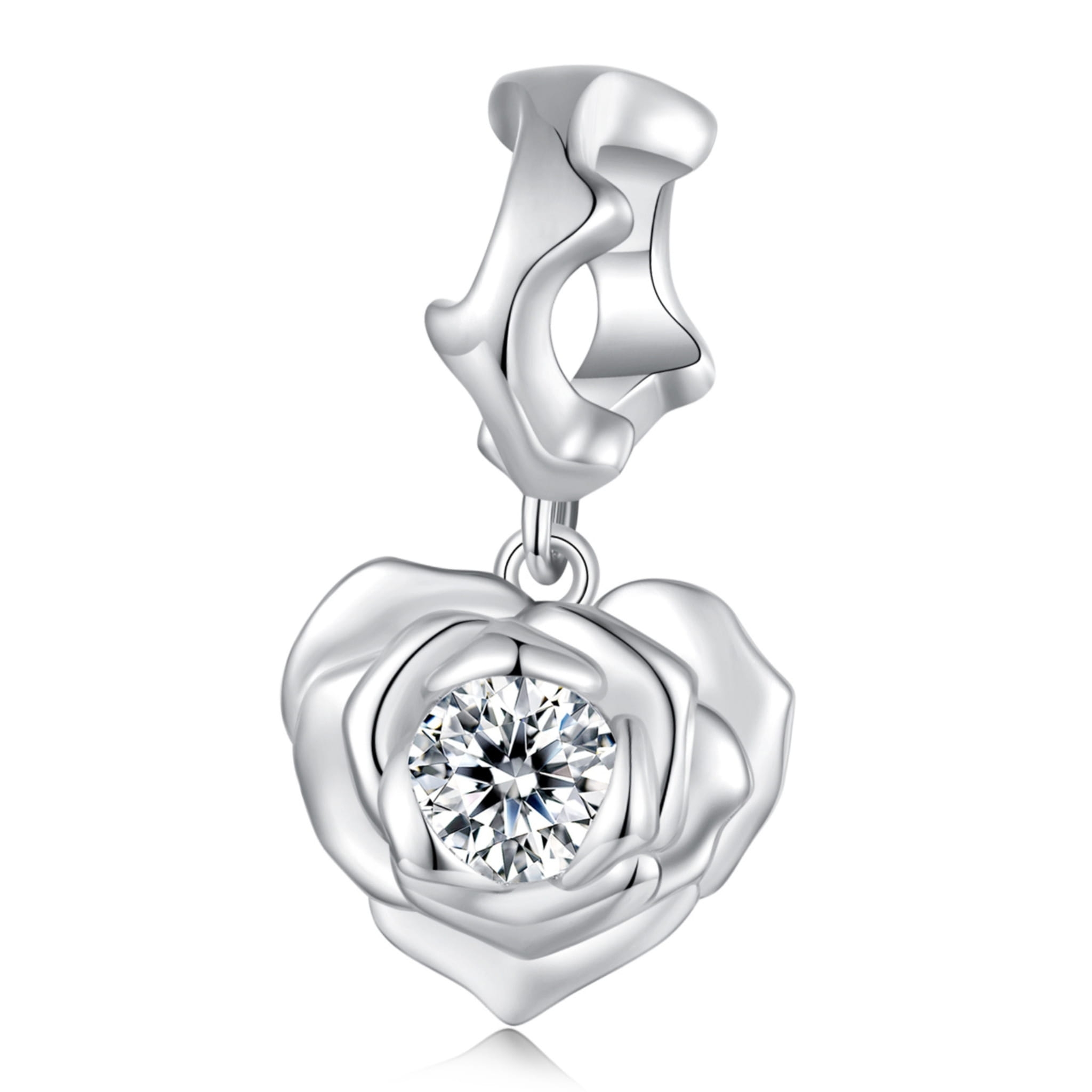 Charms zawieszka ze srebra: różane serce. materiał: srebro 925 kolor kryształów: przezroczysty kształt/motyw: różane serce wymiary charmsa: 18,0*9,0 mm wymiary serca: 10,0*9,0 mm szerokość otworu: 4,5 mm waga: 1,30 g marka: SilverBeads model: H564 Charms pasuje do większości bransoletek modułowych znanych producentów. Może być także wykorzystany jako zawieszka do naszyjnika. Gratis eleganckie opakowanie. Zawieszki zapakujemy w elegancki, satynowy woreczek. Sprawdzi się on zarówno jako opakowanie prezentowe, jak i do przechowywania biżuterii. Jeśli potrzebujesz pudełeczka prezentowego lub dodatkowych woreczków satynowych znajdziesz je w naszej ofercie.