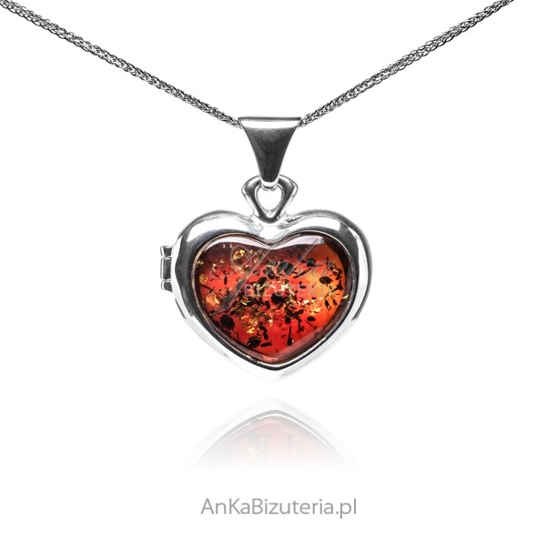 Puzderko srebrne z bursztynem , otwierane na różnego rodzaju pamiątki, zdjęcie itp.