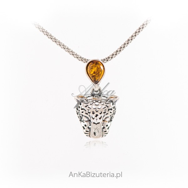 Zawieszka srebrna z koniakowym bursztynem – oksydowana