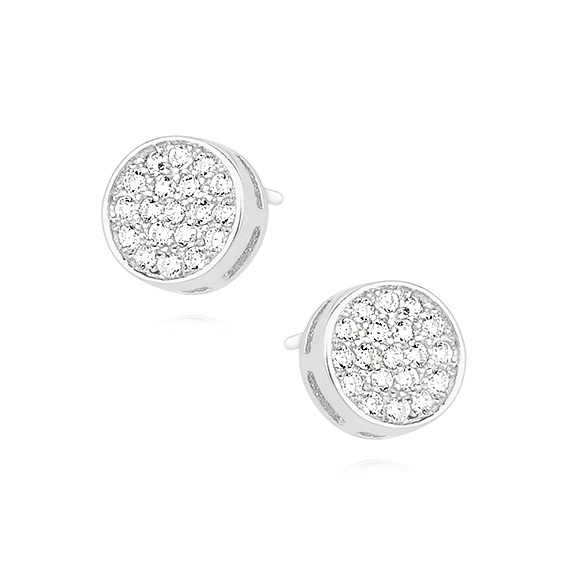 Srebrne kolczyki próba 925 okrągłe z cyrkoniami. Piękne kolczyki delikatnie się mienią. Świetnie się sprawdzą jako prezent.