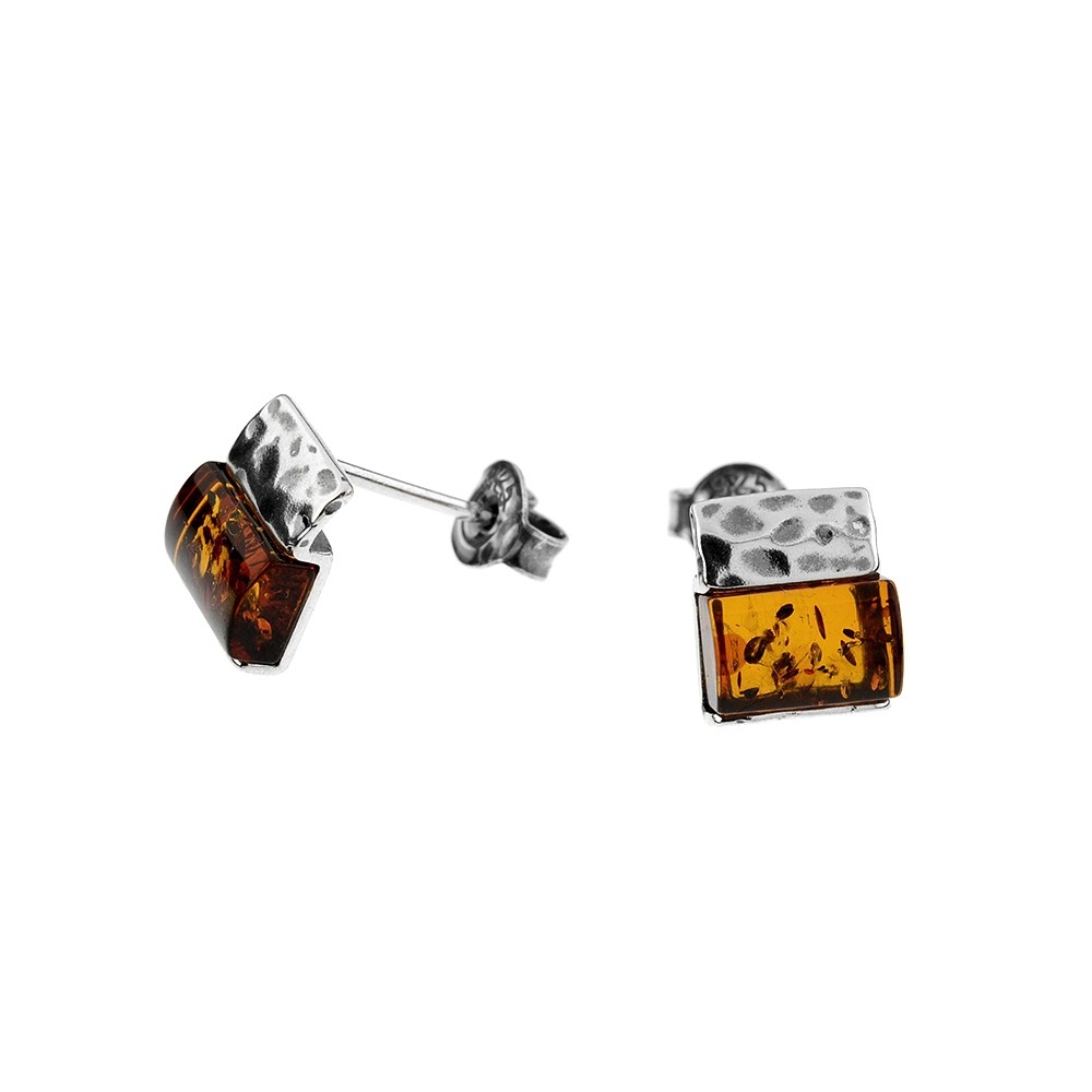 Srebrne kolczyki pr. 925 z koniakowym bursztynem Waga kolczyków ~ 1,95 gWymiary kolczyków – 0,8 cm x szer. 0,7 cm (max)Typ zapięcia kolczyków – sztyftOpakowanie do kolczyków gratis – na załączonym zdjęciu.