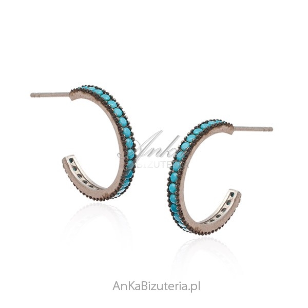 Srebrny kolczyki pr. 925 oksydowaneWaga kolczyków ~ 1,85 gWymiary kolczyków – dł. 1,5 cm x szer. 0,2 cmTyp zapięcia kolczyków – wkrętkiKamienie: niebieskie turkusyOpakowanie do kolczyków gratis – na załączonym zdjęciu.Śliczne kolczyki z maleńkimi turkusami , które zostały “zakuwane” jak diamenty, metoda jest doskonała, bowiem kamienie nie wypadają.