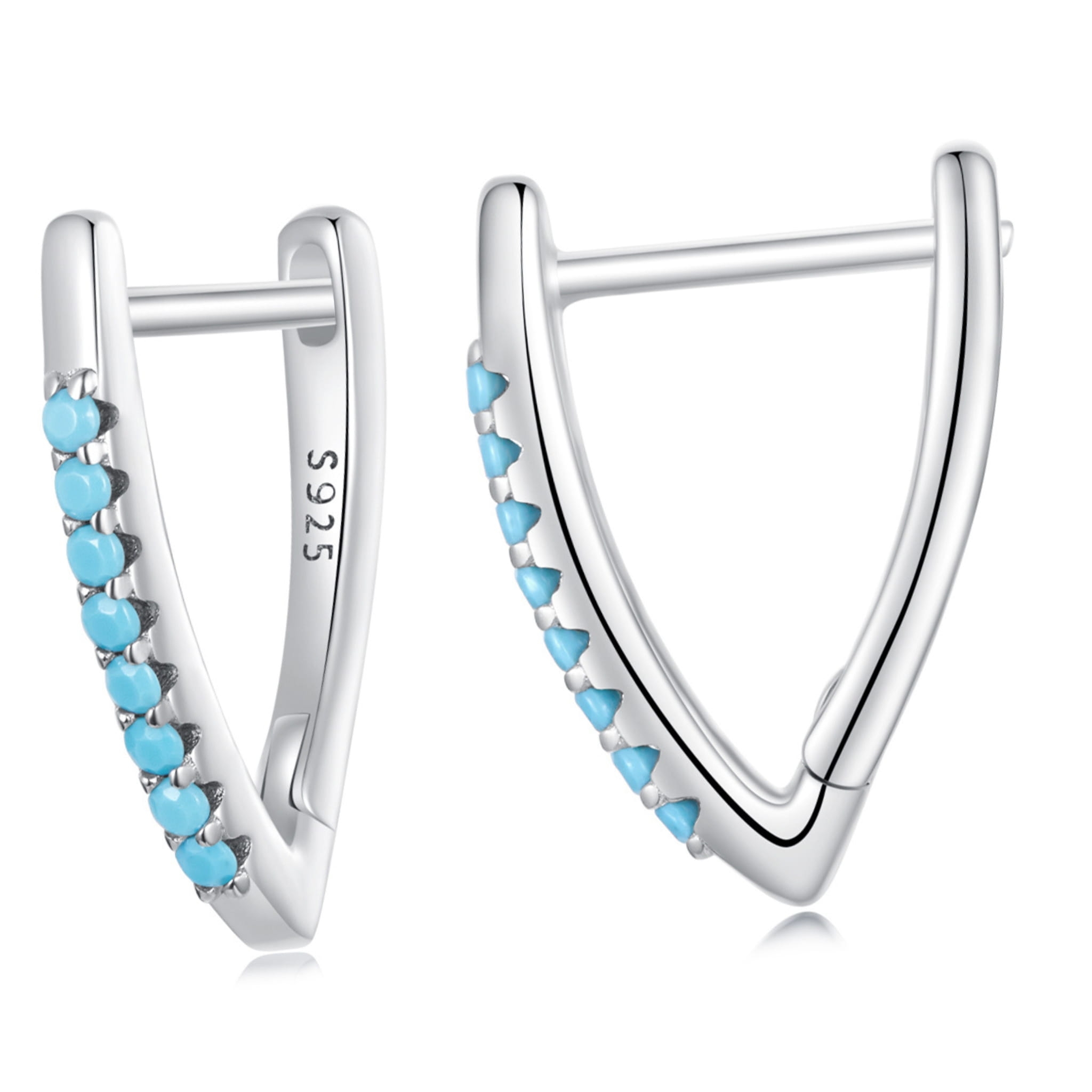 Srebrne kolczyki w kształcie V z turkusowymi kryształkami koła zatrzaski srebro 925