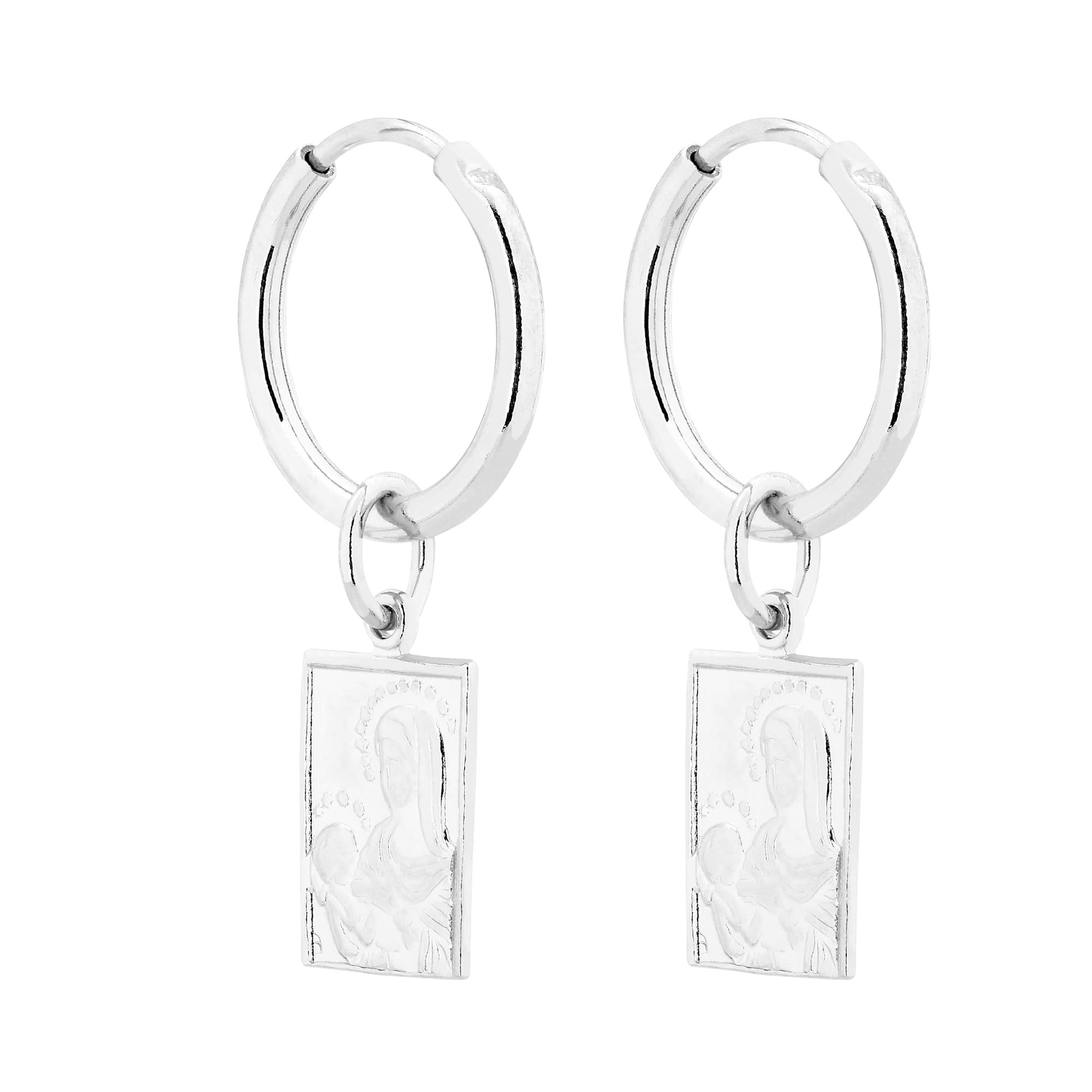 Srebrne długie kolczyki z medalikami. Całość wykonana ze srebra 925.