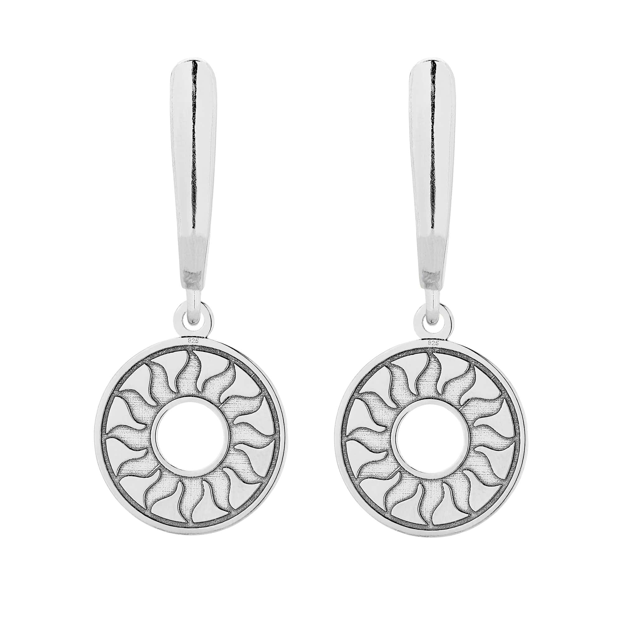 Srebrne kolczyki ze słoneczkami. Zapinane na bigle angielskie. Całość wykonana ze srebra 925.