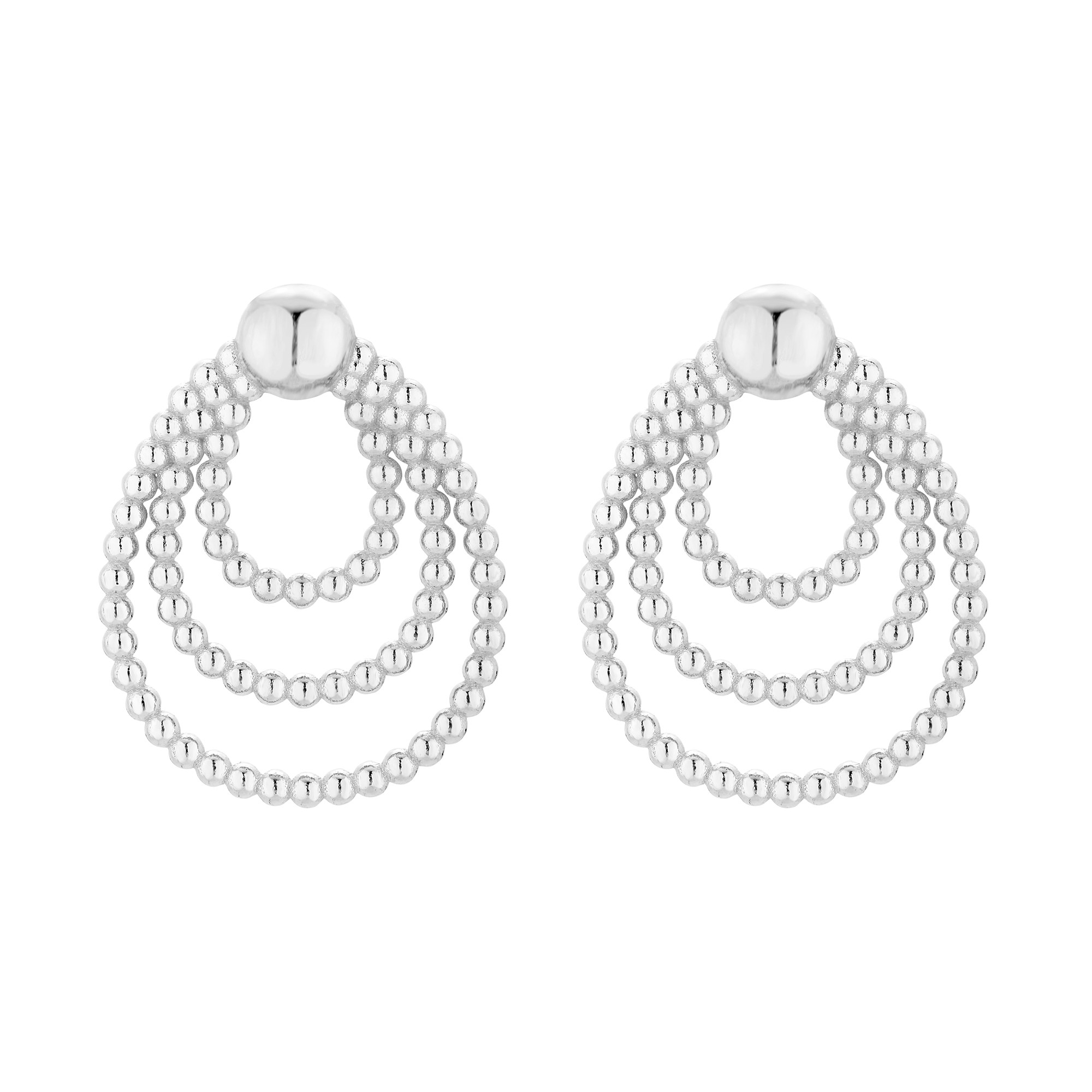 Srebrne potrójne kolczyki. Całość wykonana ze srebra 925. Zapinane na sztyft. Kolczyki posiadają zapięcia (baranki).