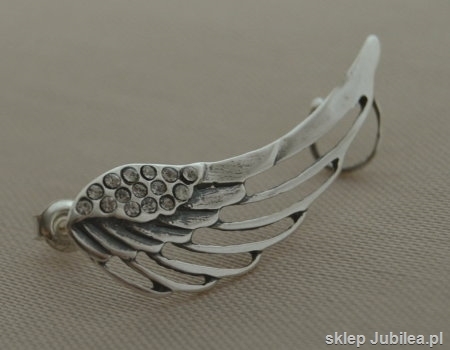 Prezentujemy Państwu wyjątkowy przedmiot jakim jest srebrna nausznica w kształcie skrzydła. Skrzydło, które może także przypominać piórko ma wkomponowane 15kryształków Swarovskiego.