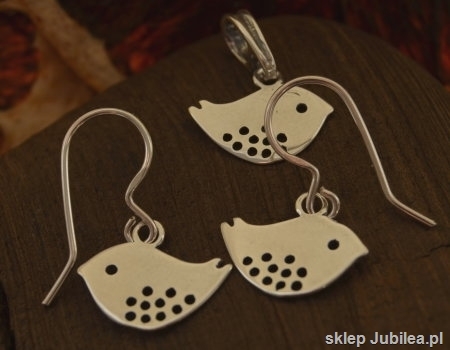 Prezentujemy państwu urocze srebrne ptaszki w składzie kolczyków i wisiorka.