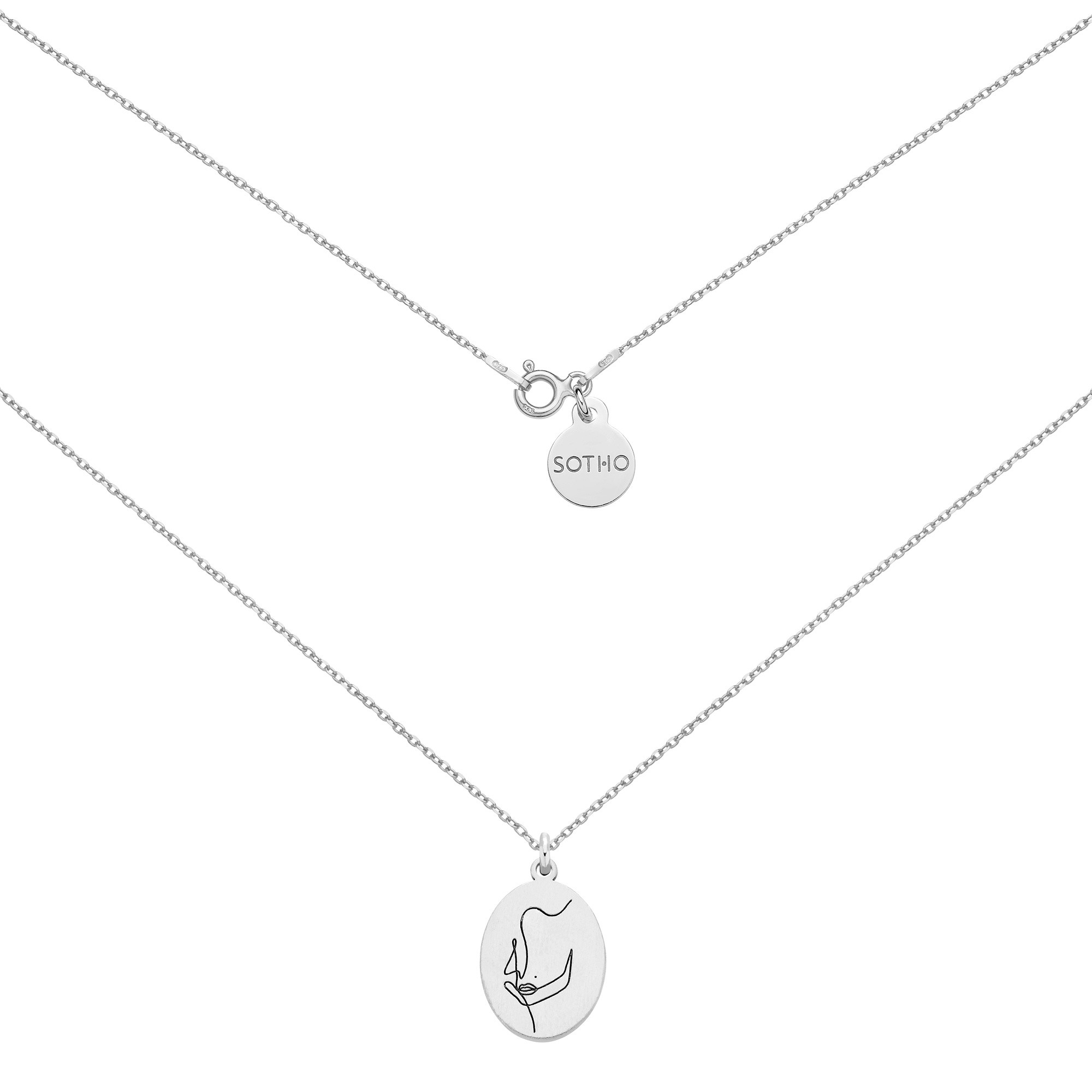 Srebrny matowy medalion Face N°8 zawieszką z logo marki. Całość wykonana ze srebra 925.
