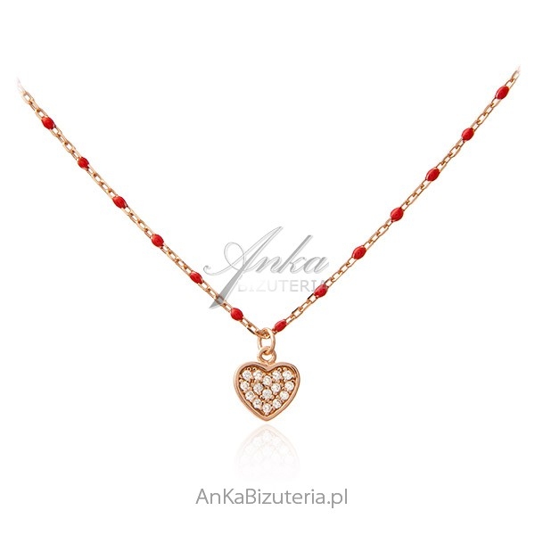 Srebrny naszyjnik próba 925 pozłacany różowym złotem z czerwoną emalią i cyrkoniami