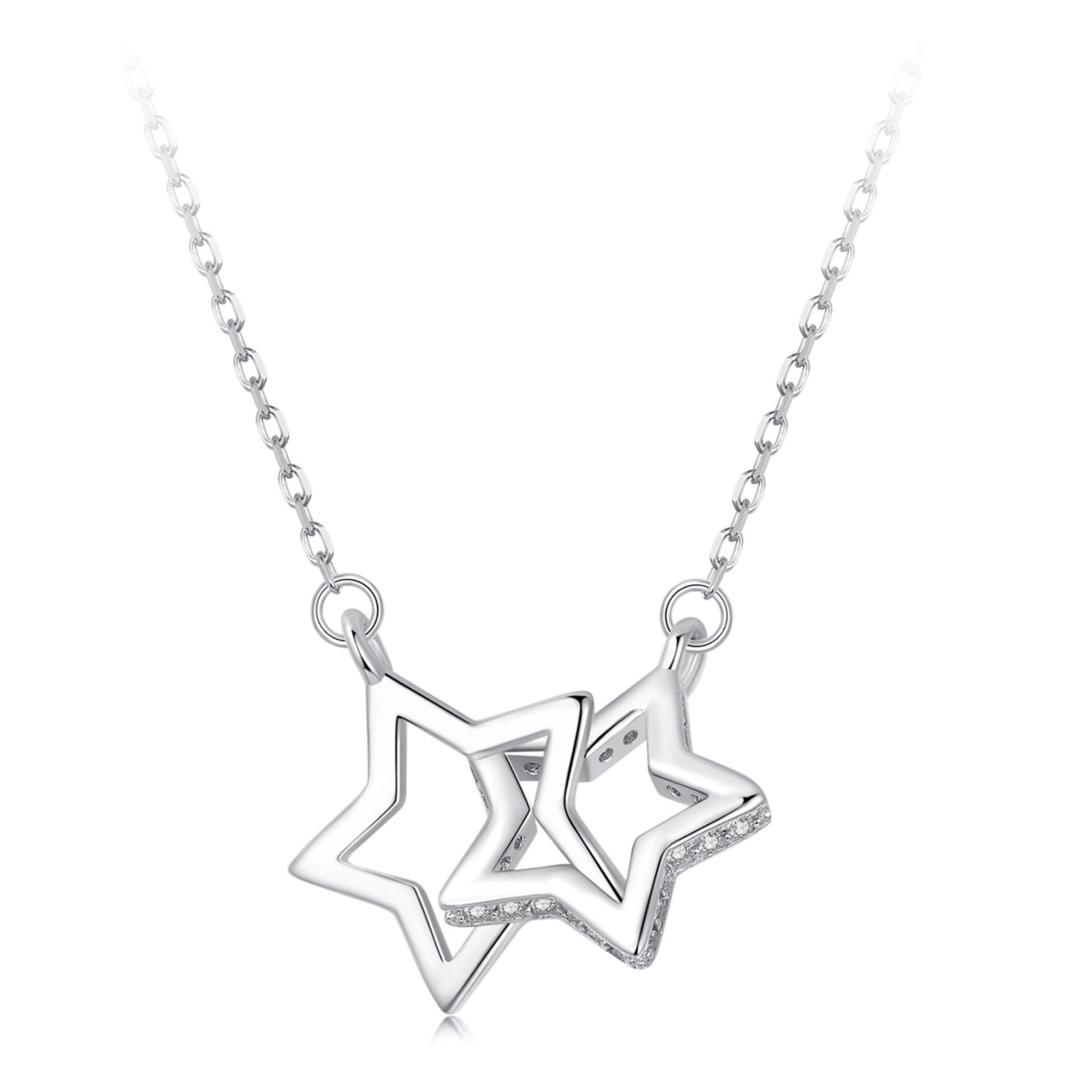 Srebrny naszyjnik: z dwoma gwiazdami. Delikatny naszyjnik wykonany ze srebra 925 i kryształów. Długość regulowana jest poprzez ogniwa na końcu łańcuszka. materiał: srebro 925 kolor kryształów: przezroczyste splot: klasyczny długość całkowita: 40,0-45,0 cm – regulacja wielkość zawieszki: 14,0*17,0 mm grubość łańcuszka: 1,0 mm waga: 2,20 g. marka: SilverBeads model: N189 Gratis eleganckie opakowanie. Naszyjnik zostanie zapakowany w eleganckie pudełeczko prezentowe. W przypadku zakupu zestawu naszyjnik-bransoletka, naszyjnik-kolczyki zostaną one zapakowane razem do jednego większego pudełka. Jeśli kupujesz biżuterię dla kilku osób i potrzebujesz dodatkowych pudełeczek lub woreczków satynowych znajdziesz je w naszej ofercie.