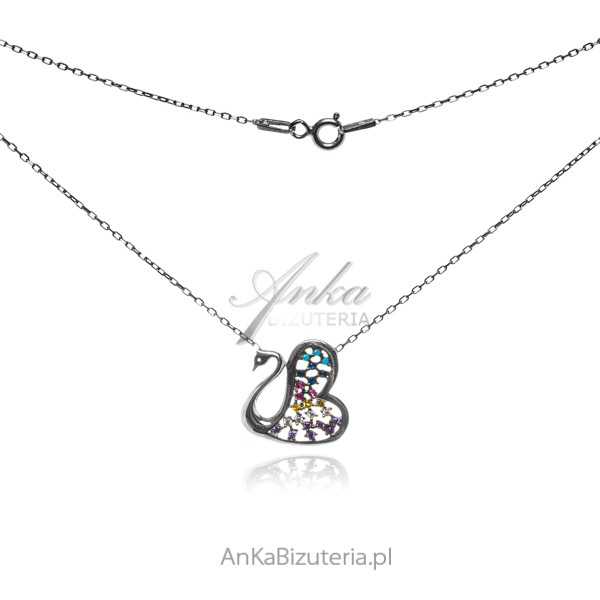 Srebrny naszyjnik próba 925 rodowany z kolorowymi cyrkoniami