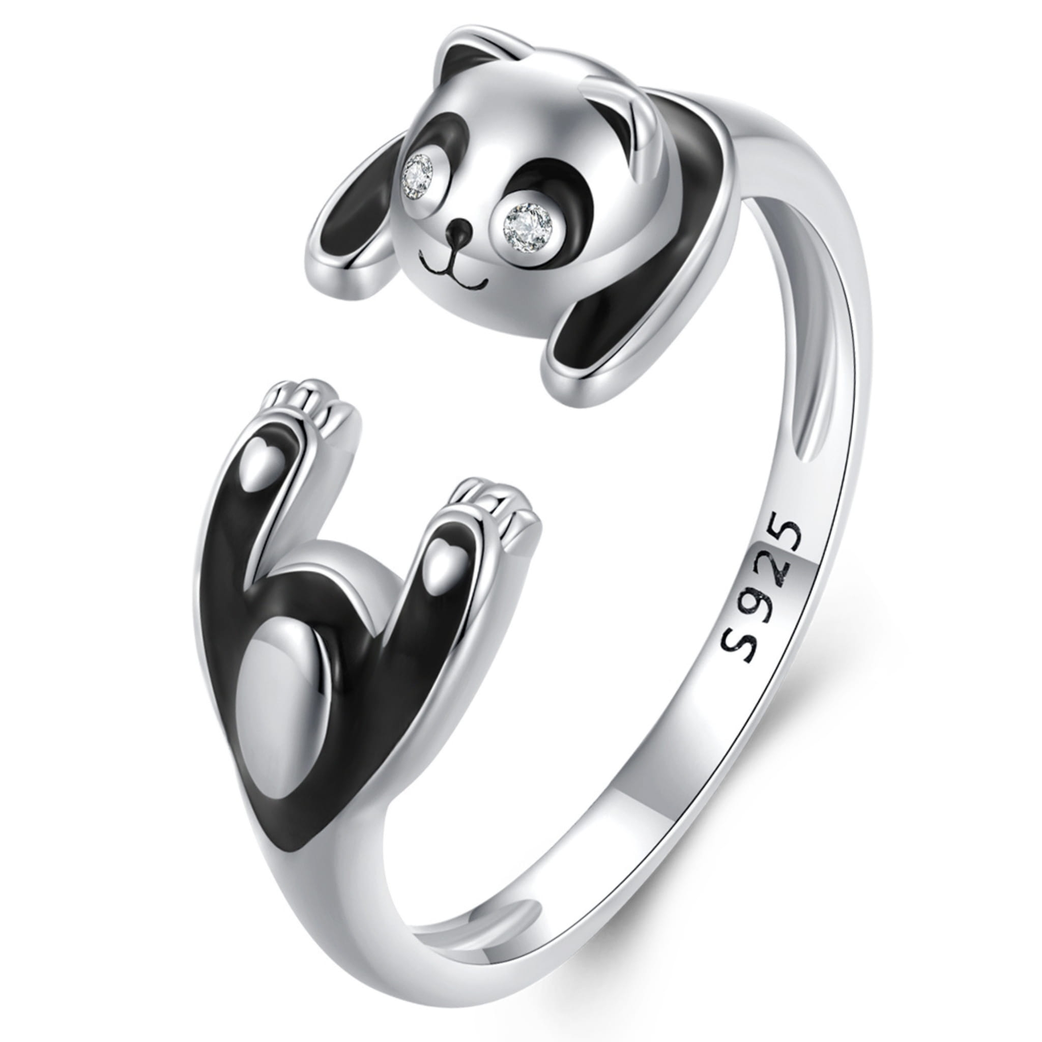Srebrny pierścionek uniwersalny ze słodką pandą srebro 925