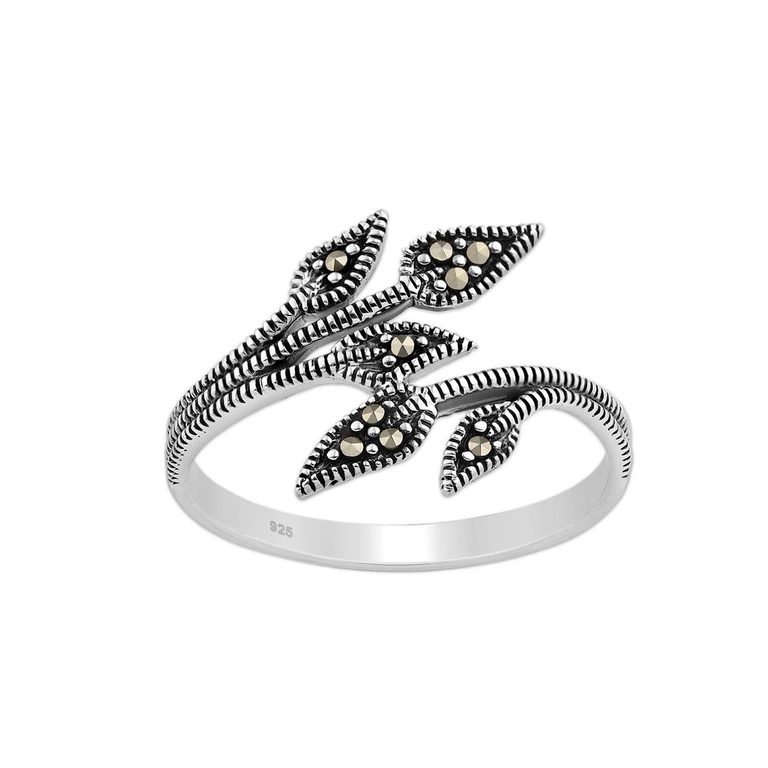 Uroczy srebrny pierścionek z markazytami o cudownym diamentowym blasku. Wykonany został z oksydowanego srebra w najwyższej próbie 925. Pierścionek okazale się prezentuje. Doskonała ozdoba dla Pań, które cenią wyjątkową jakość i unikatowość.