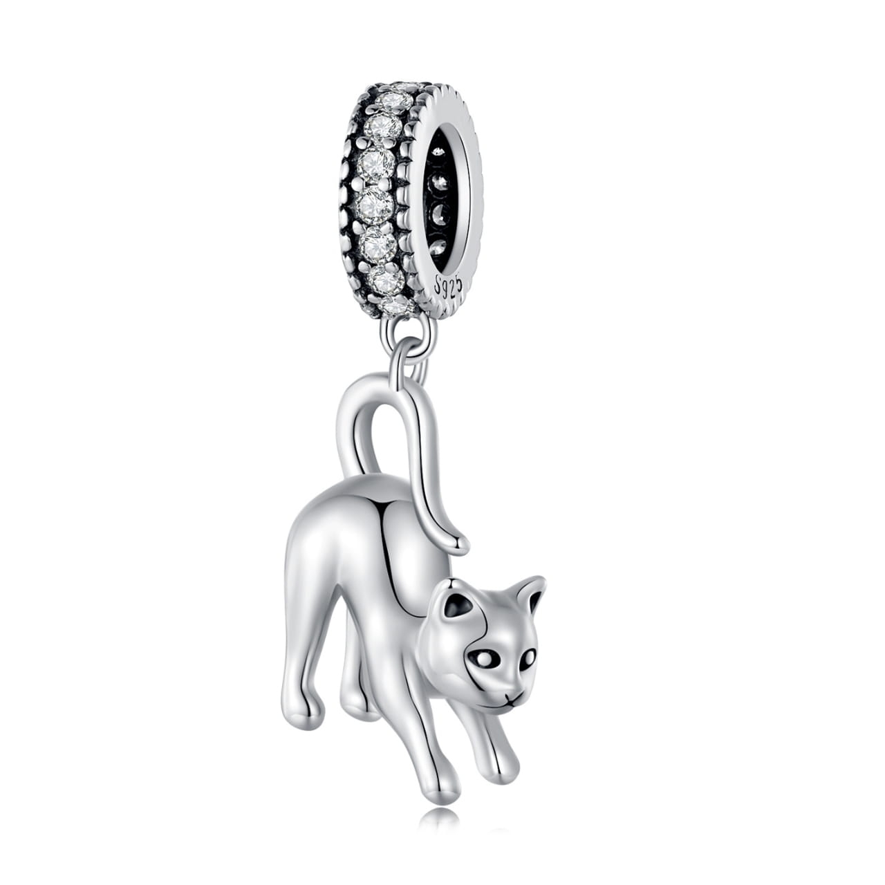 Srebrna zawieszka charms: wiszący kotek ozdobiony kryształkami. materiał: srebro 925 kolor kryształów: przezroczyste kształt/motyw: wiszący kotek wymiary całej zawieszki charms: 24,0*10,0 mm wymiary kotka: 12,0*12,0 mm szerokość otworu: 4,5 mm waga: 2,20 g marka: SilverBeads model: G839 Charms pasuje do większości bransoletek modułowych znanych producentów. Może być także wykorzystany jako zawieszka do naszyjnika. Gratis eleganckie opakowanie. Zawieszki zapakujemy w elegancki, satynowy woreczek. Sprawdzi się on zarówno jako opakowanie prezentowe, jak i do przechowywania biżuterii. Jeśli potrzebujesz pudełeczka prezentowego lub dodatkowych woreczków satynowych znajdziesz je w naszej ofercie.