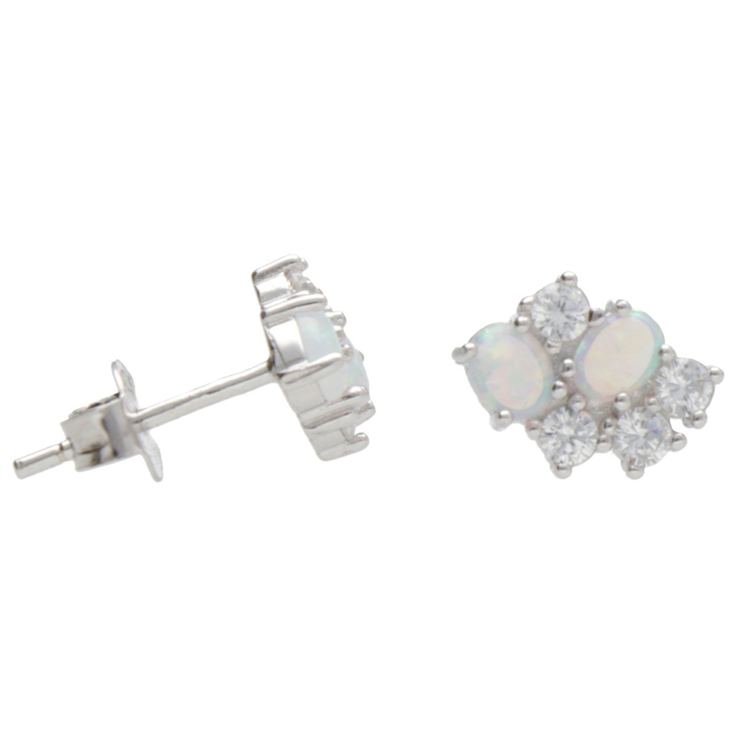 Subtelne kolczyki srebrne z białym opalem i cyrkoniami – biżuteria włoska