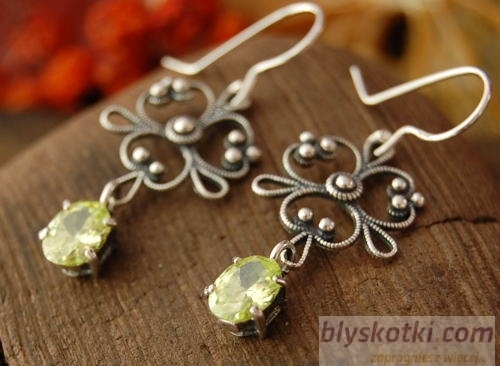 Delikatne srebrne kolczyki, w których ażurowe kwiatki połączone zostały z połyskującym cytrynem zakutym w srebrną oprakę.