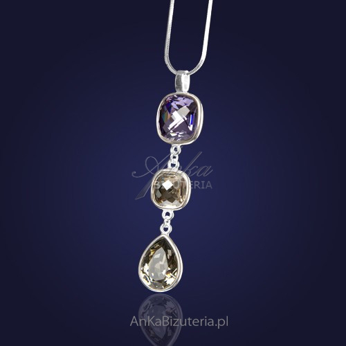 Najniższa cena od 30 dni Swarowski-Wisior-Srebrny na łańcuszku z kryształami Swarovski – fioletowym i szarymi.Srebro próba: 925Srebro rodowane.Waga: 21,5grDługość łańuszka: 42cm (w razie potrzeby wymienimy na rozmiar 45cm, 55cm)Długość wisiorka: 7,5 cmOpakowanie do naszyjnika GratisDo tego naszyjnika mamy w ofercie kolczyki w kolorze silver shadow – szarym. Naszyjnik srebrny z trzema kryształami w kolorze fioletowym (kwadrat), mniejszy szary (także kwadrat) i ostatni – łezka także w kolorze szarym. Wisiorek z limitowanej serii z kryształkami Swarovskiego. Wisiorek na grubym łańcuszku srebrnym – żyłka. Biżuteria rodowana-nie zmieni koloru. Biżuterię wysyłamy zapakowaną w piękne pudełeka.