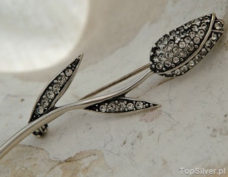 Prezentujemy srebrną broszkę, która powstała z uwielbienia do secesji oraz motywów roślinnych w jubilerstwie. Srebrny tulipan w którym wkomponowano aż 52cyrkonie to przedmiot który wprawi w zachwyt każdą miłośniczkę piękna.