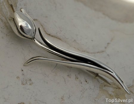 Proponujemy srebrną broszkę o bardzo ciekawym kształcie przypominającym tulipana.