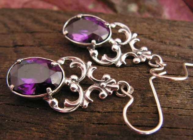 Stylowe kolczyki, które swój piękny wzór zawdzięczają rozkwitowi jubilerstwa w carskiej Rosji. W niepowtarzalny ornament wkomponowany jest ogromny ametsyt (syntetyczny)