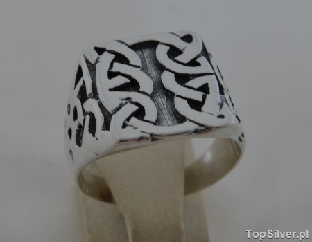 Ten ciekawy w stylistyce sygnet może być dobrym początkiem dla mężczyzn pragnących nosić na swoich dłoniach sygnet. Ten srebrny sygnet jest